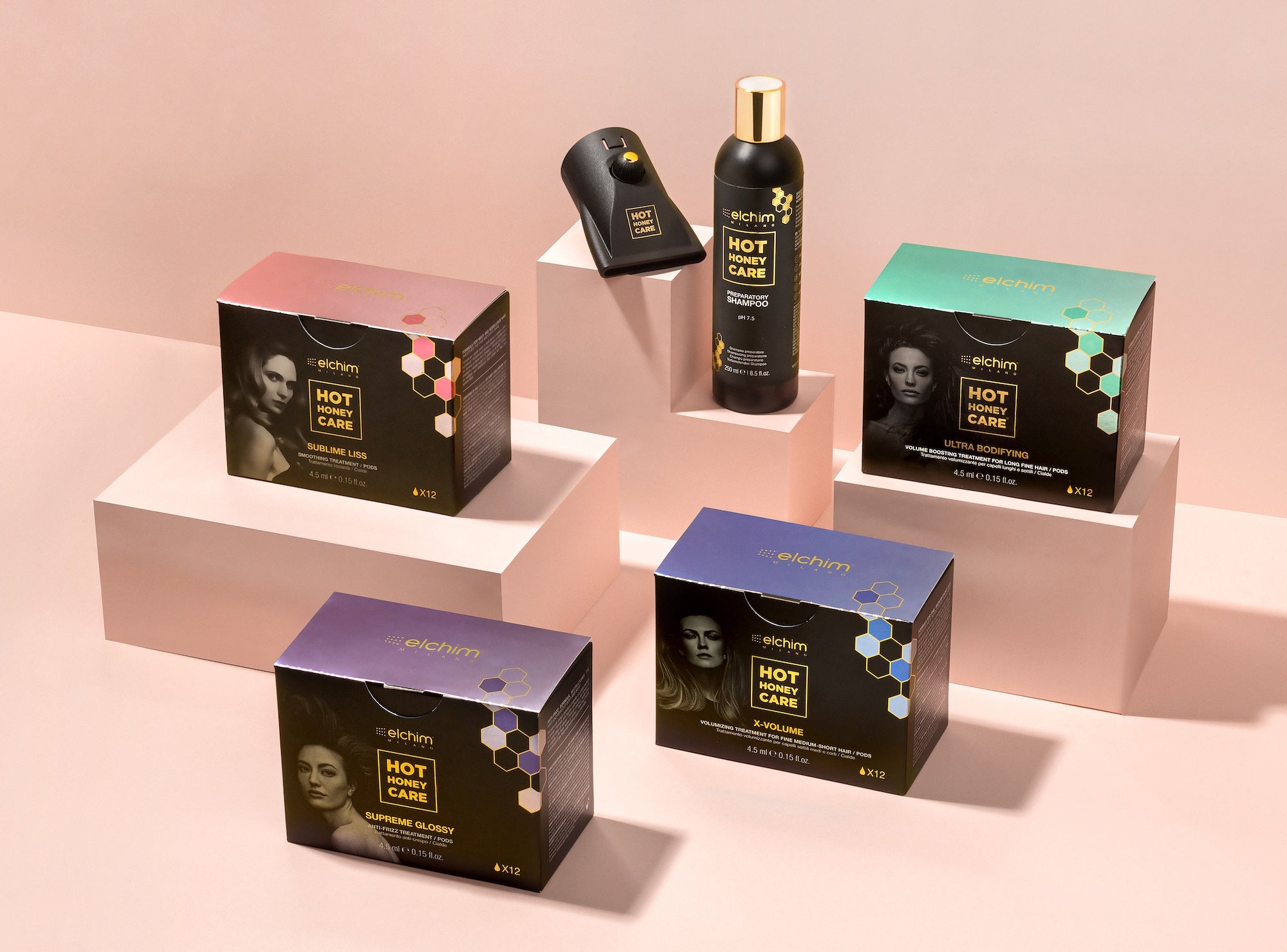 The revolutionary 3 in 1 pods system that transforms the hair with ease and guaranteed effect during the blowout.